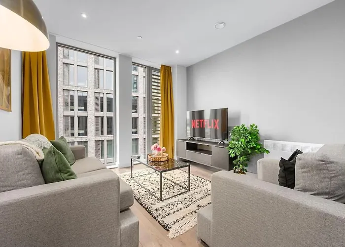 Wenn Sie im Viertel Salford von Manchester wohnen möchten, ist das 111 m² große Modern Central Apartment By City Superhost Manchester eine gute Wahl. Die Unterkunft liegt in einer Entfernung von 14 Minuten zu Fuß vom Urbis.